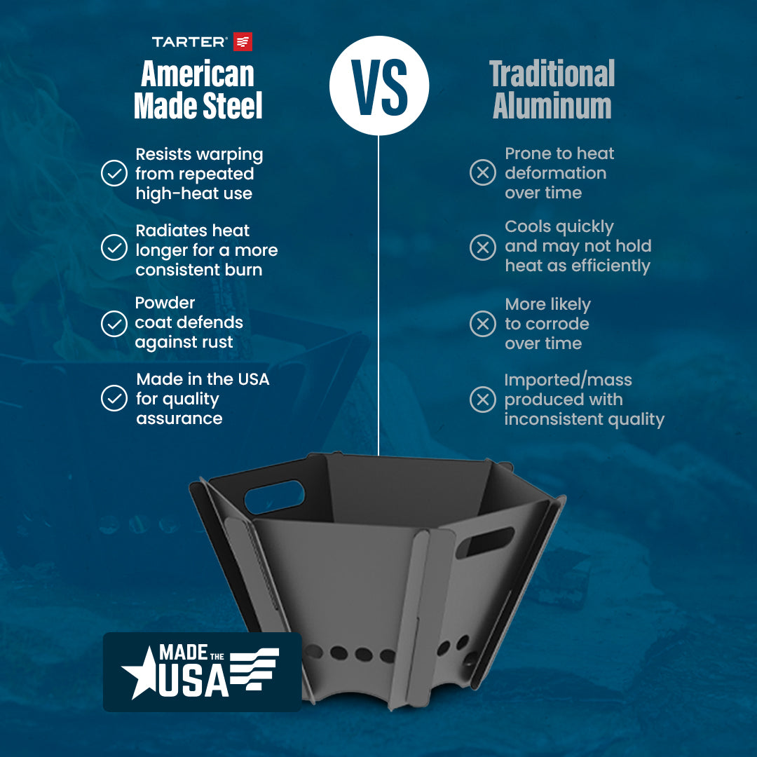Thanks to its unique slot tab design, our outdoor fire pit can be assembled in under 2 minutes without the use of tools. This allows you to focus less on setup and more on creating lasting memories around a beautiful fire. Its portable design enables you to bring the warmth and style of a fire pit with you wherever your adventures lead.
